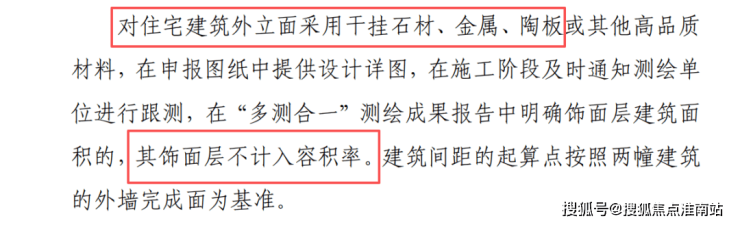 如果外立面采用干挂石材、金属等高品质材料,饰面层不计入容积率。这点让很多人期待未来的高品质住宅外立面会升级!