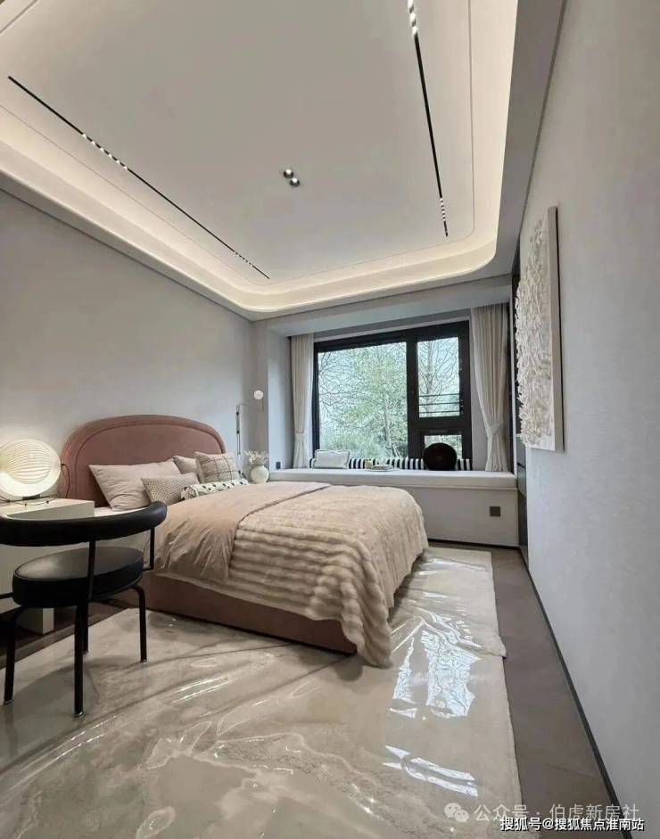 其中主卧的270°转角飘窗就有约5.7m²,通过与外立面的结合,直接做了梳妆台和储物柜,拓展了飘窗的实用性。