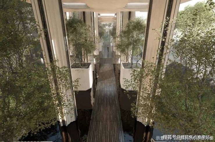 在景观方面,项目内部设置约3500㎡下沉庭院,地下通过坡地自然过渡至地上园区,在核心景观区,通过约6.6米超高架空与6.3米下沉庭院,打造约13米高差的全维森境体验