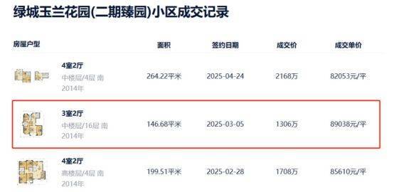 6.二手市场价格可期,旁边绿城二期今年成交一套90m²小户型,单价9.1万,比保利天奕前期小户型最贵单价还贵出近1万/m²!