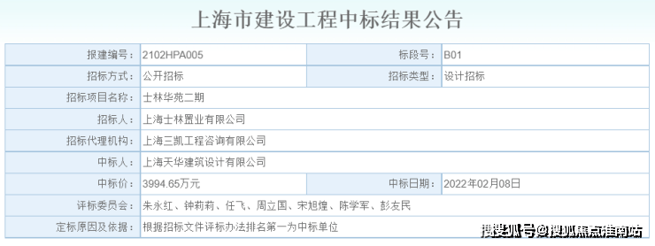 2022年2月8日,上海天华建筑设计有限公司以3994.65万元中标士林华苑二期地块设计项目!