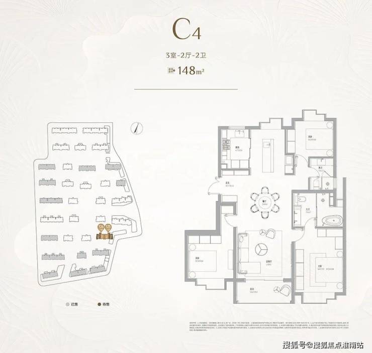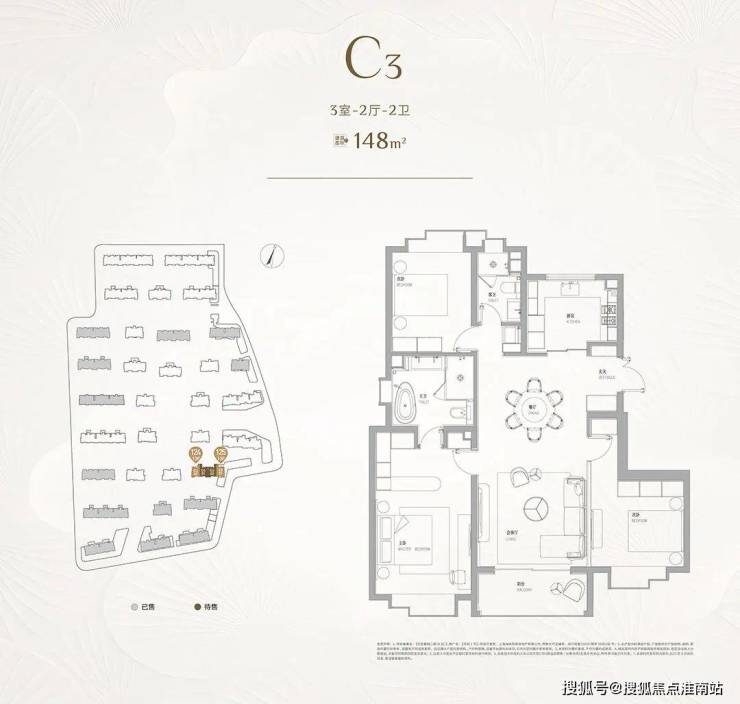 还有建面约134㎡3房户型供应,此户型主卧依旧是大套房设计,拥有独立玄关空间、厨房空间,北次卧门口还有收纳空间,典型的飞机户型,各空间互不干扰,非常适合三代同堂或一家三口居住。