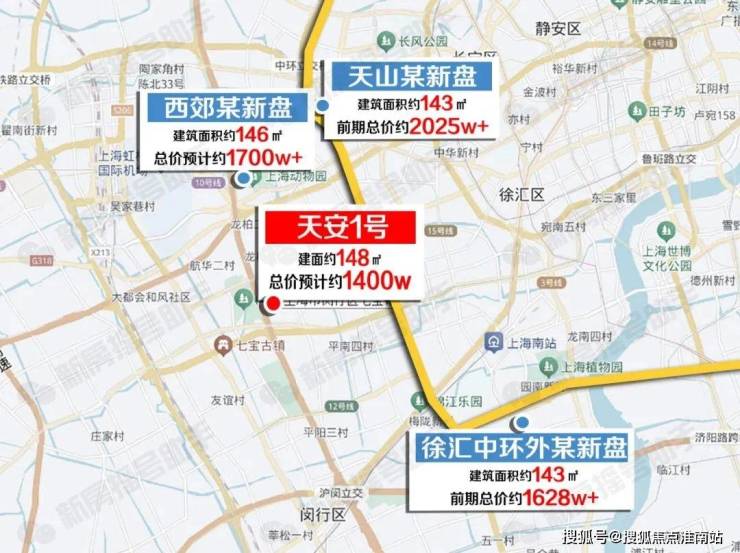 另外,以本次「天安1号」约148㎡户型总价约1400w的价格,对比徐汇中环外某新盘、长宁西郊某新盘、长宁天山某新盘,均有约200-600w的价差,当下上车如此高价值的“卷王”品质大盘,超值体验前所未有!