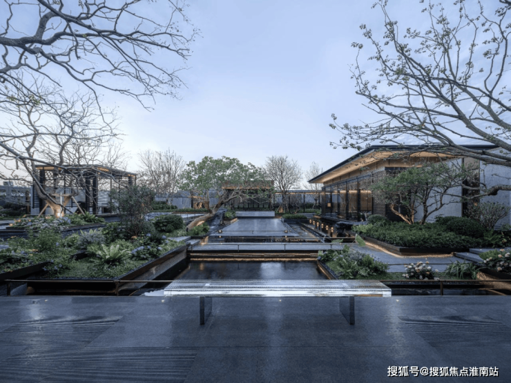 保利·海上瑧悦,即师法张园,延续了张园“以画入园、引水入园”的理念,将长约200m,约1000m²的水系覆盖到整个社区内,结合静水、叠水、瀑布等水景,再现古典意境。