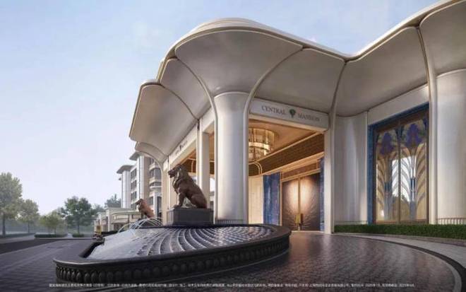 玉兰门庭 」摩登飘逸,环抱式落客前场,大师定制 非遗掐丝珐琅门钹,流转温润光华,敬呈归家尊崇礼序,自此启幕生活的华贵序章。