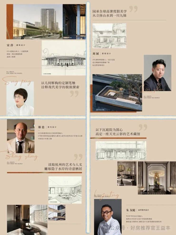 项目由四大鼎豪御用大师联袂打造---GLA宋萍、JTL刘展、CCD郑忠、TCD2朱友庭,这种大师天团的配置,与武林壹号,杭州壹号院同属滨江顶豪品牌序列!