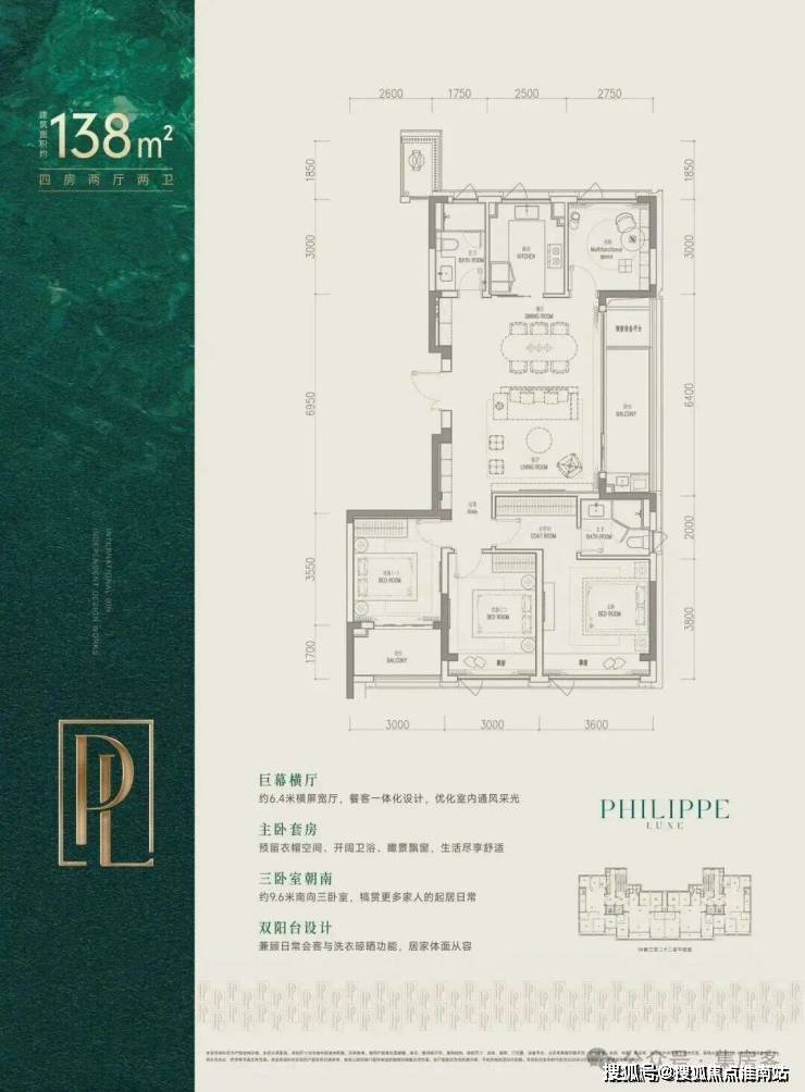 建面约138㎡是全明边套,三面采光,270°环绕视野。配上约6.4米横厅与大阳台,像一块被阳光浸透的生活幕布,日常就很有度假感。