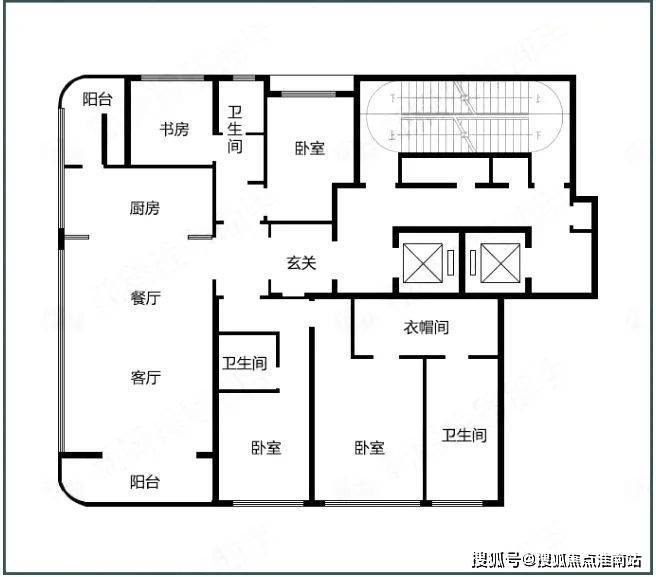 215㎡的纵置核心筒户型,与横置核心筒相比, 整体布局更加紧凑,但功能分区同样出色。