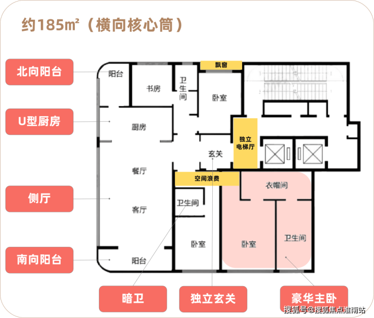 整体来讲,边户的185㎡户型比中间户型215㎡,采光面更大,利用率更高。