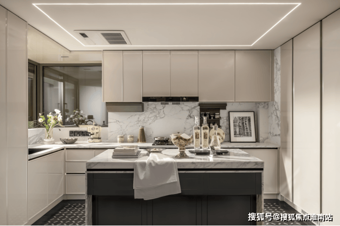 华润外滩瑞府售楼处电话☎:400-998-9694 超大尺度的中西岛台 ,既符合中式烹饪的实用逻辑(预留足够操作台面),又能承载西式社交(朋友小聚时在岛台品酒聊天),让厨房从“单一做饭空间”变成“生活场景发生器”。