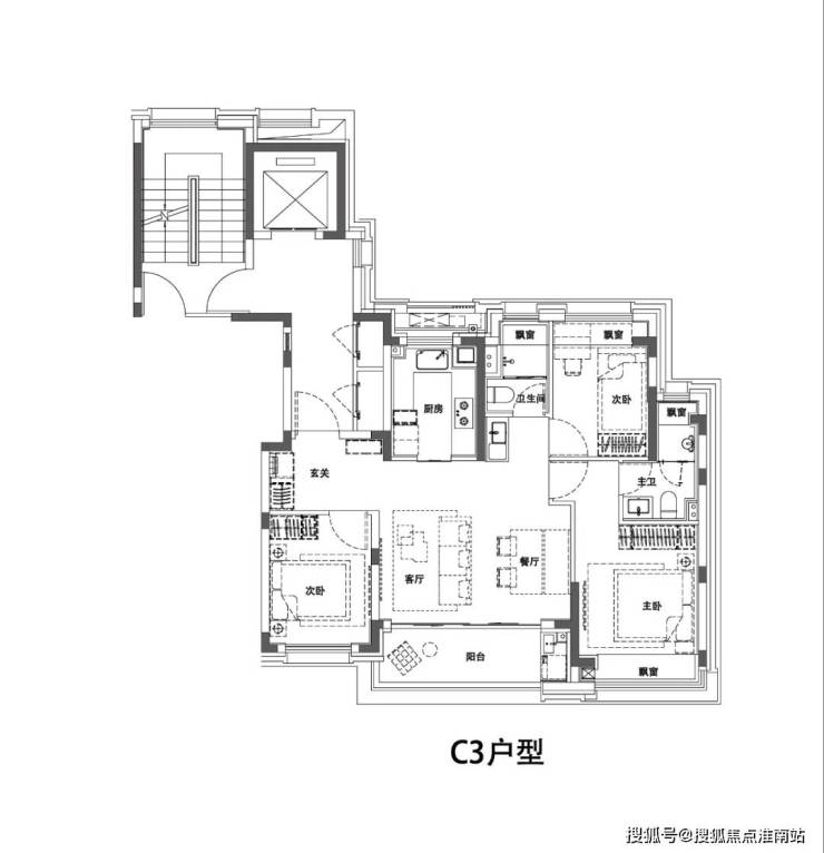 尤其你看项目建面约102㎡的C3户型,格局上超越了传统意义的三开间朝南,客厅面宽高达约5米外接差不多尺度的阳台,真正实现3.5开间,让业主起居之间沐浴更多阳光的同时,公区尺度感也直逼其他项目建面约100-120㎡户型。
