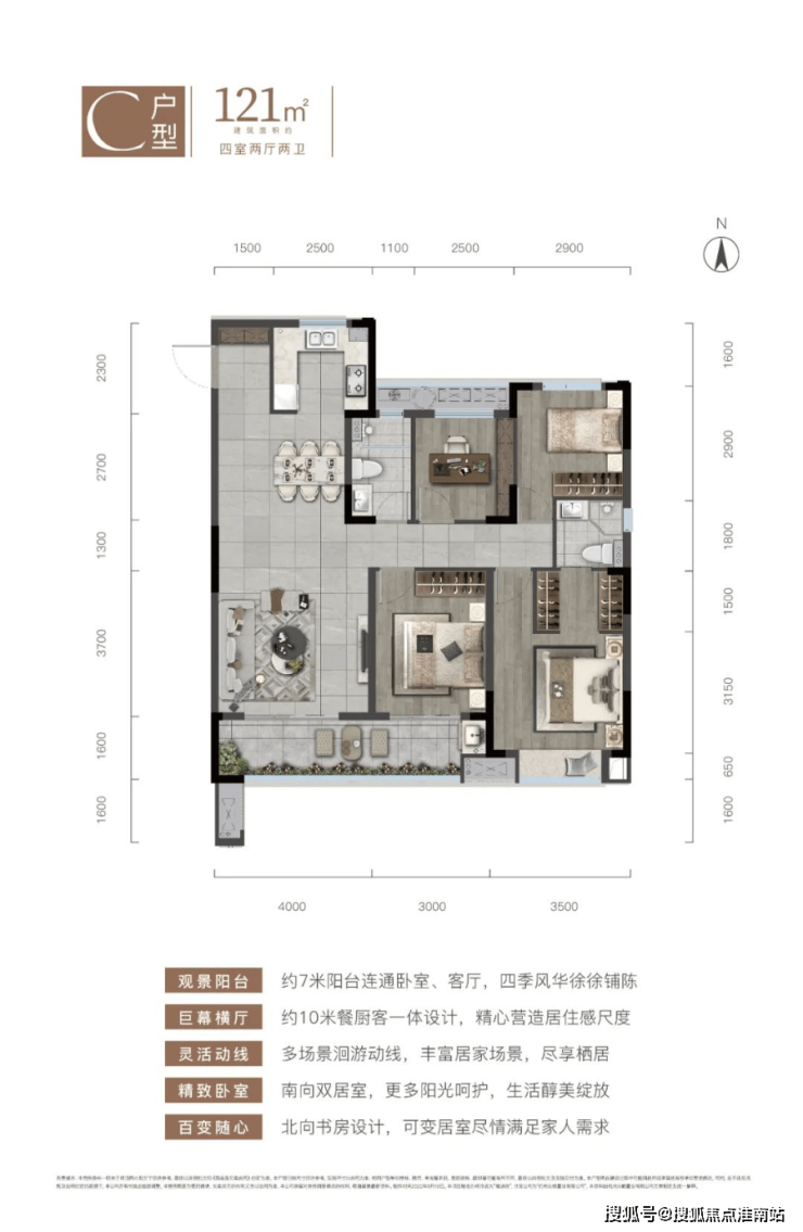 建面约89m²全能大三房,主次卧空间充沛,主卧套房式设计、三开间朝南向、双卫设计,空间多得;建筑面积约105㎡大三房全明户型,双卧朝南、拥约7米南向景观阳台、餐客一体横向约6米宽幅采光。更高的得房率,安放生活多重逸趣。