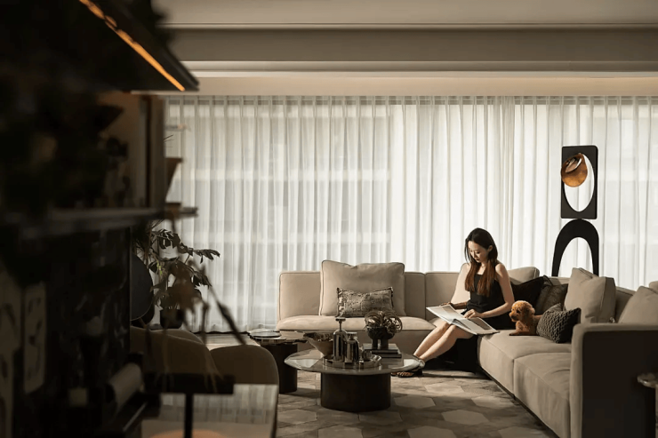 汇而泰的「环景空中庭院」,从里面看,是家的延伸,从外面看,则是一道城市风景。这源于曲线女王扎哈的设计灵感。这位建筑大师曾把一个个「凝固的波浪」种进伦敦、米兰和迪拜,汇而泰则把她的曲线灵魂带到了南门江。