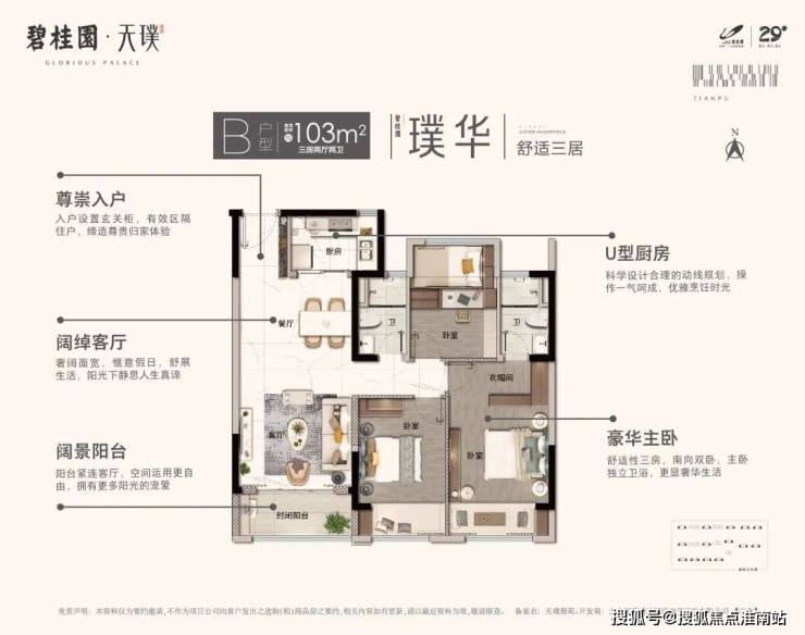 户型优选南北通透方正布局,开间与进深比1:1.5为佳,避开暗卫设计。