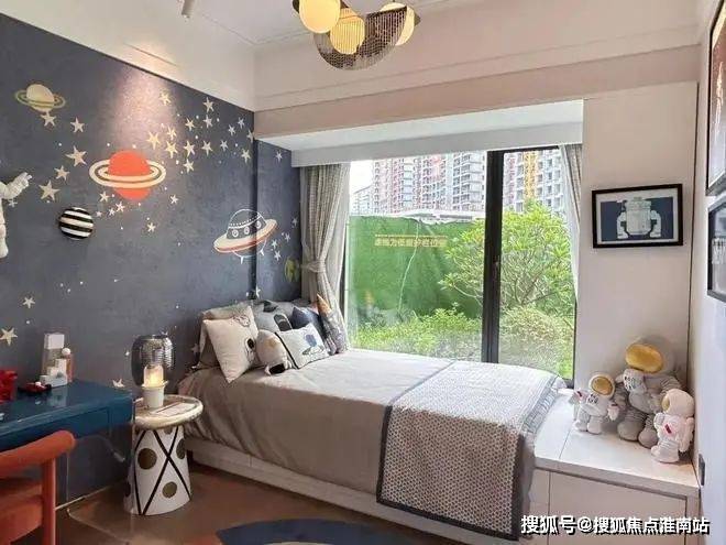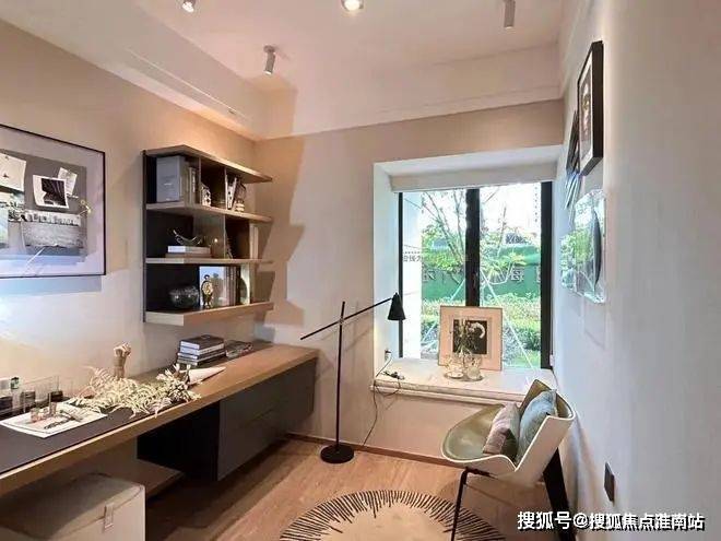 另一个房间,样板间则作为创意书房,利用坐垫和靠枕等软装将飘窗打造为阅读区。