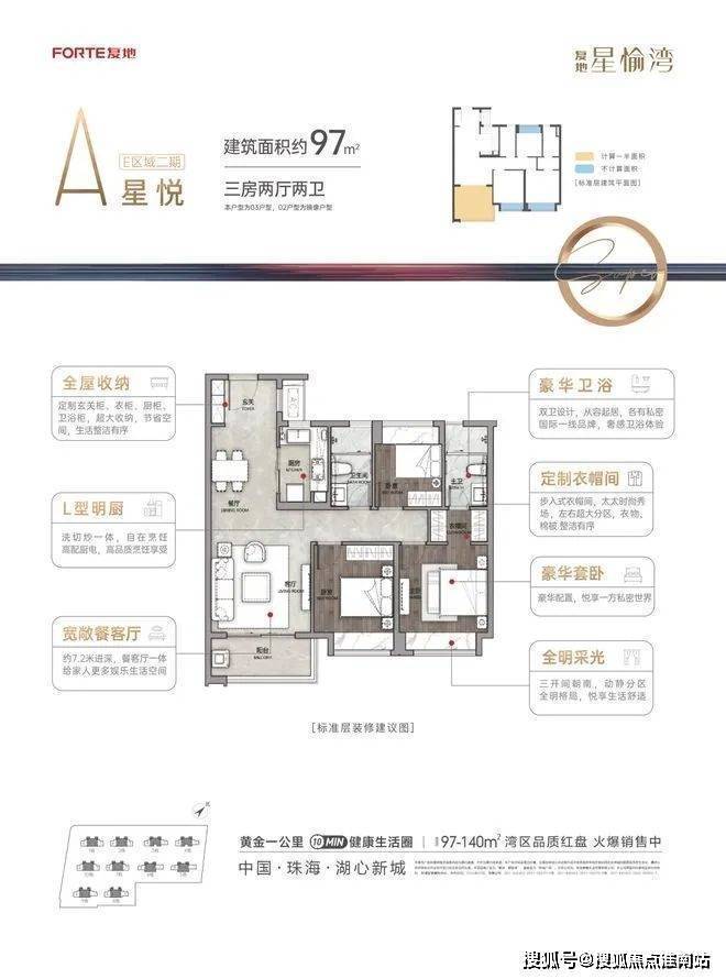 复地星愉湾采用全东南向、南北通透一字板楼落位,约30米楼间距,带来更长时的光照体验,更优质的通风享受,无论是晾晒衣服还是阳台观景,多晒太阳有助于身心健康,防治抑郁症。