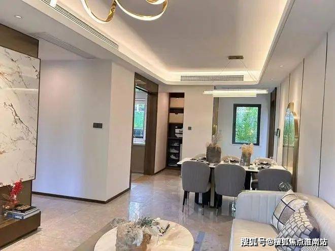 客餐厅一体,虽为竖厅设计,但开间够宽阔,视觉上能达到横厅带来的奢阔效果。
