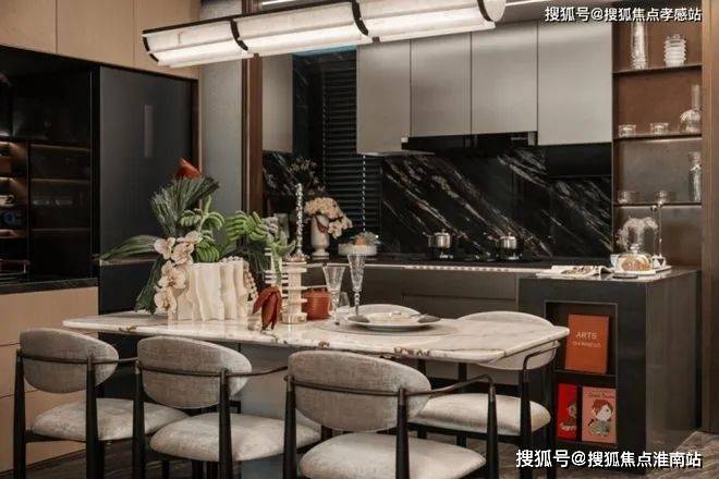 另外一方面,客卫的移位释放了大量的空间, 放大了⤴️ 翎翠滨江售楼处热线☎️☎️:400-887-5663 ৳﷼ 餐厅、厨房,尺度感、通透性极强,并且做到了几乎0空间浪费。