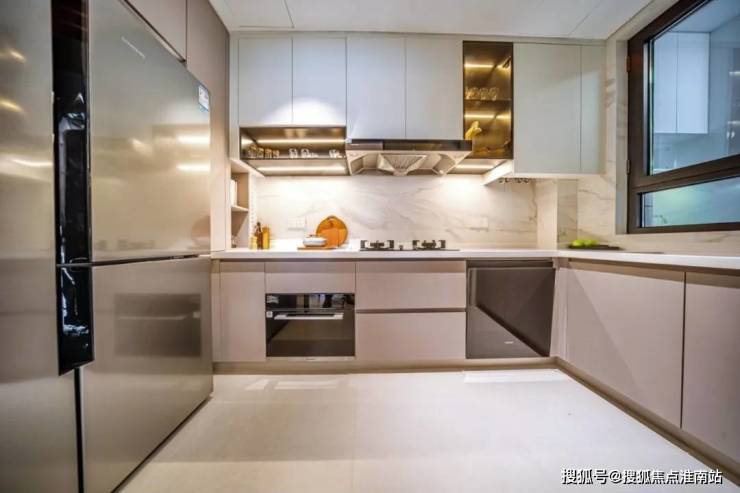 厨房配备西门子抽油烟机、燃气灶,铂浪高不锈钢水槽、龙头;定制橱柜收纳让厨房井然有序,洗碗机+蒸烤一体机(部分户型)大幅减轻家务负担,还贴心设置欧普凉霸(或同档次品牌),为下厨降温解烦,可谓细节到位!