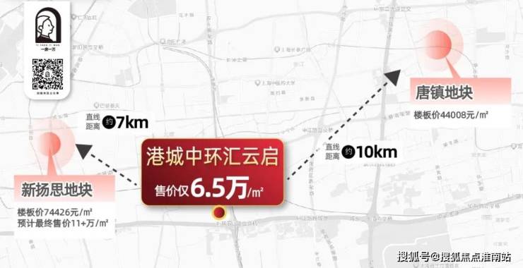 与新扬思和唐镇地块几公里之遥,港城中环汇云启的销售价格仅为6.5万/㎡,这一价格相较于周边地块的预期售价,显得格外亲民和实惠。