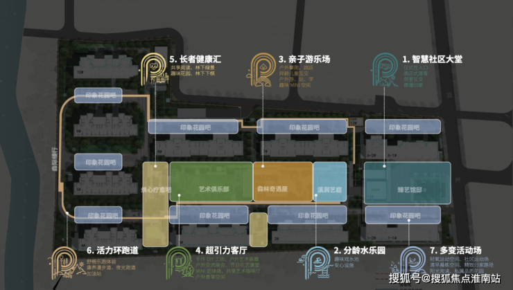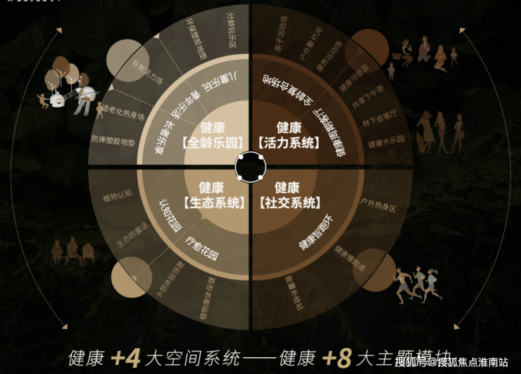 健康社交系统、健康全龄乐园、健康生态系统和健康活力系统等4大空间系统,叠加健康智能环、健康周期客厅、全龄复合场地、儿童乐玩、青年乐活、长者乐享、认知花园、疗愈花园等8大主题模块,营造出可持续生长的、全生命周期式健康人居的外部生态体系。