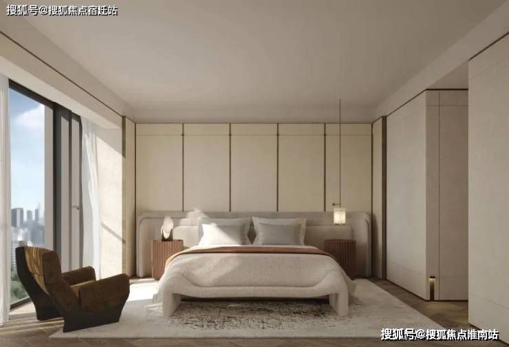 建筑线条挺直向上,海派的材质色系简约高奢。摩登复古的风格与精心设计的蒙太奇式转场效果创造出一种独特的视觉和感官体验。这一设计理念从始至终贯穿于建筑、室内及景观的设计之中,确保了整体风格的一致性和连贯性。