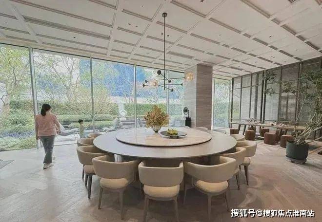 一楼有私宴厅,配有备餐间,大落地窗可以看社区景观;B1有泳池、健身设施、二楼规划有阳光草坪、落日酒吧,还有下沉式庭院,完整的售楼处实景展示可能要等到6月中旬。