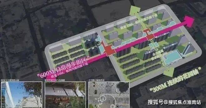2、整座大城在地块内部塑造了两条景观轴线:一条是约300米的连续花园轴、一条是约600米的日常漫步街区;