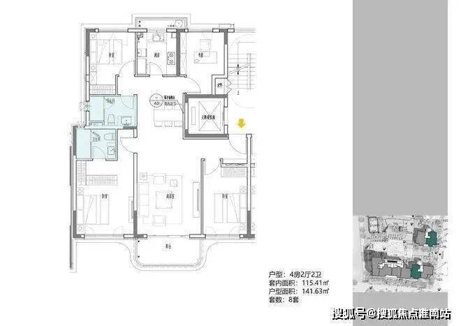 2地块容积率2.94,只有一栋小高层,共67套房源,产品建面约108-148㎡.