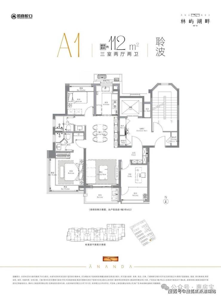 社区内5/8高层楼栋均有架空空间覆盖,共计约1700㎡,最高建筑层高约7.2米的架空空间以休闲下沉卡座、水吧台、休闲会客区打造,联动室外水池营造出酒店式度假空间,实现建筑与自然的无界融合。项目将推出建面约112㎡、122㎡、145㎡高层3-4房以及建面约160-165㎡叠墅,共计624套,其中112户型为一梯两户,122户型两梯两户。建面约112㎡3房2厅2卫,约166套,