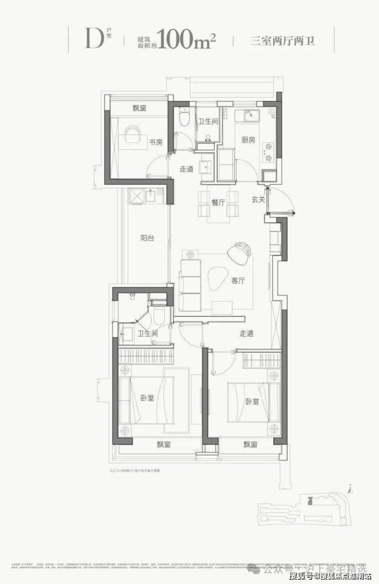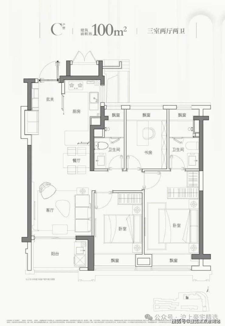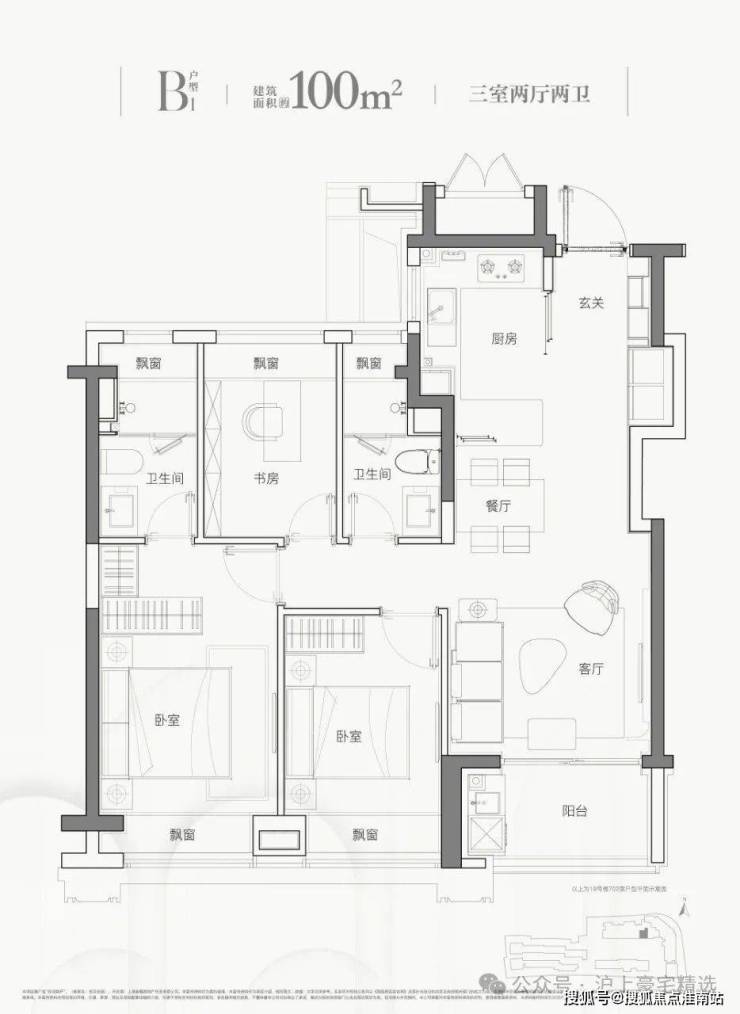 平层建面约102㎡三房