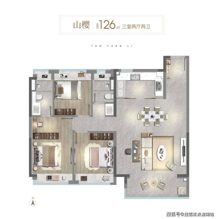 ✔建面约106㎡做到了真三房,客厅面宽达到约3.45米,开放式可视厨房设计,搭配南向大面积阳台,打造开阔的一体化家庭公共活动空间,整体居住体验明亮开阔。