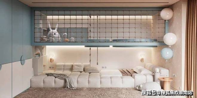 儿童区域则增添了更多的色彩,备显轻松、活力,浅蓝色让人如临海洋,黄色积极活泼有张力,而米色作为主颜色打底,遍布整体空间,来给予温馨、居家的氛围感。