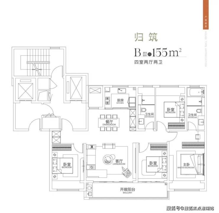 155㎡与183㎡户型基本一致, 4房方厅,双联阳台,区别在与183㎡多了一个卫生间和一个储藏室。