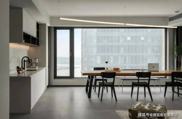 客餐厅采用一体化的设计,空间更加区域敞亮,恰到好处的留白带来了更多的高级感,用懒人沙发和长桌来划分空间,这种划分空间的方法不隔断空间,更加有层次,点线面结合更富东方的美学意境,让人与空间之间相互深度交流。