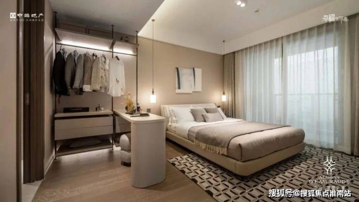 全屋约14.6米大面宽的尺度,让三个卧室都能够直面南向采光,实现阳光平权。主卧是豪华套房,除了飘窗、独卫外,由于空间够大,不论是衣帽间的梳妆打扮,临时办公等,也都能在主卧空间内实现。