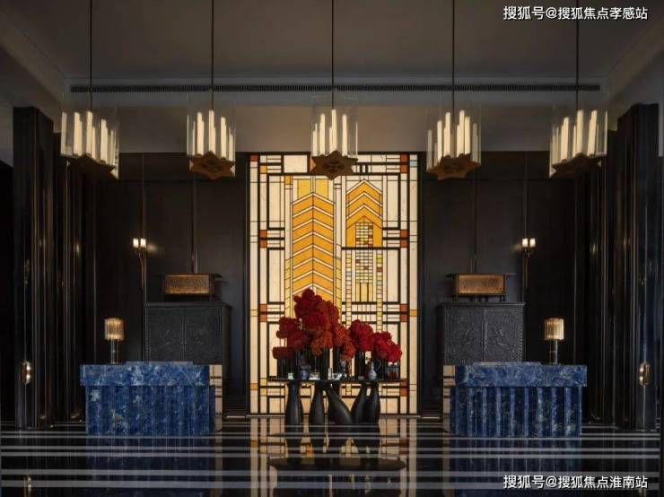 其次,项目的很多细节都融入了海派经典元素,比如落客区美轮美奂的约300㎡彩色玻璃穹顶,艺术连廊拱形廊道灵感都来自和平饭店。彩绘花窗的拱门造型则取自武康大楼。