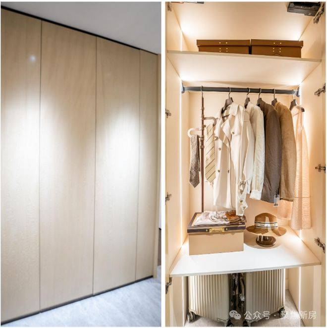 最令人惊艳的,莫过于项目将原本易被忽略的过道转化为实用收纳区——打造了少有的“过道柜”,无论日常衣物、换季的厚被子,还是不常用的生活物件,都能在此找到规整安放的位置。