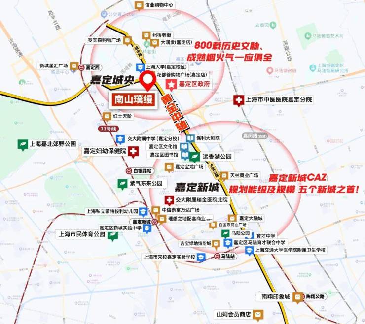 也有上海大学、嘉定区中心医院等教育、医疗资源;