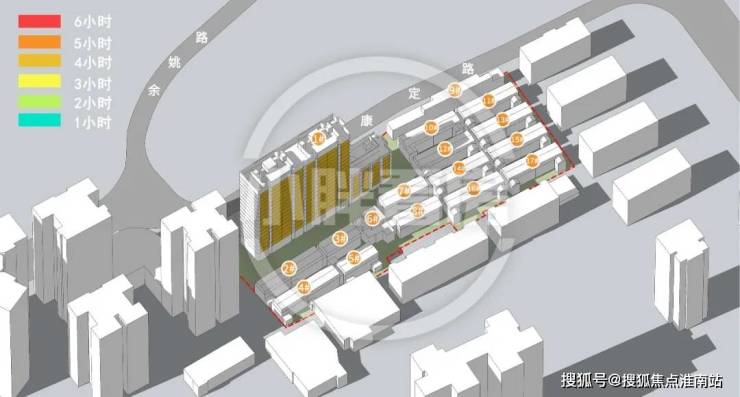 项目冬至时分高层房源日照测算模拟图:(只计算上午9点到下午3点南向日照,高层住宅的低区房源日照时长一般在1-2小时)