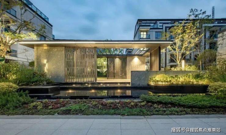 景观巧妙利用高差以中式院落空间递进关系为切入点,打造“【府】-【园】-【宅】”三重空间序列,形成“私密-半私密-半公共-公共空间”,打造三进归家动线。