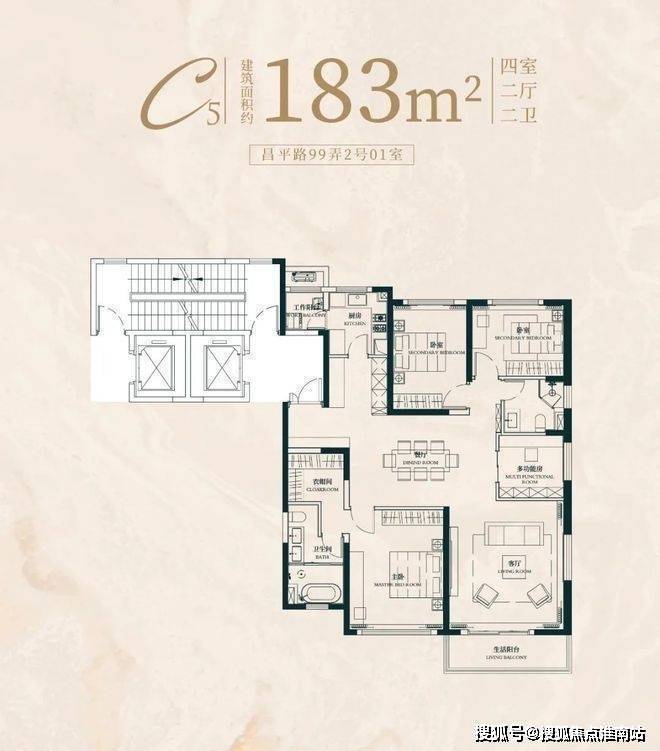 建面约183㎡4房2厅2卫户型:昌平云岸售楼处电话:400-9659-259