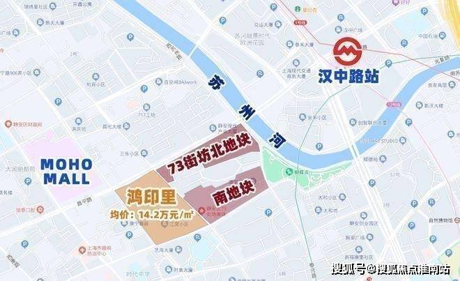 静安73街坊项目位于老静安苏州河以南,项目西侧就是鸿印里,往东就是苏州河。去年1月,鸿印里开盘推出333套房源,均价14.2万/m²,认购人数破千,入围分81.4分,开盘当天毫无悬念售罄!