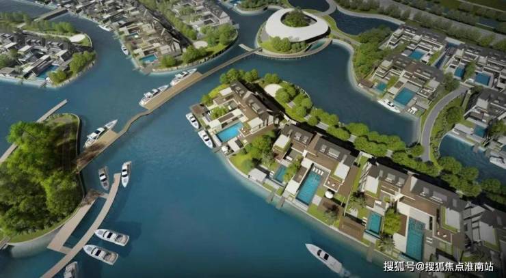每一排别墅前都有一条渠道,引入水系,可!以!停!游!艇!是真正的游艇码头滨水别墅!