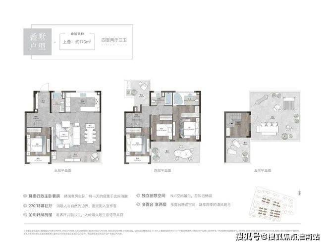 户型 ①上叠170㎡ 四室两厅三卫