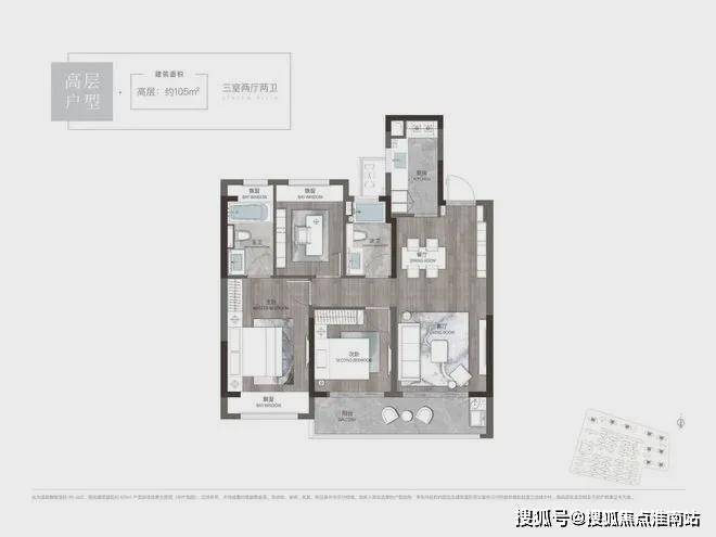 户型③高层105㎡ 三室两厅两卫