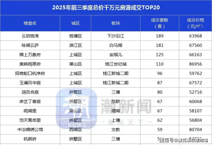 以一己之力,让下沙东部湾新城金沙嘴CBD成为了钱塘江岸新晋豪宅板块,并创下了钱塘区网签价记录,在2025年前三季度总价千万级住宅成交榜上稳居榜首!