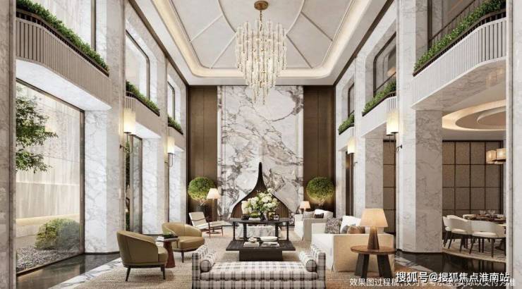 主入口长约50米、高约10米的大气门庭,满满的豪宅归家的体验感。