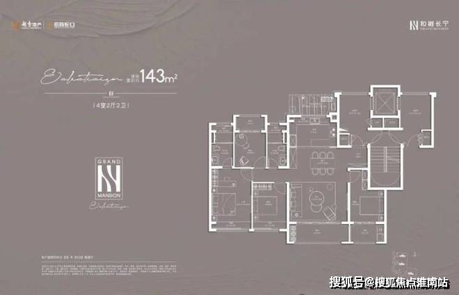 户型特点:120㎡三房为类独立电梯厅设计,南北通透,三开间朝南,主卧套房配置,双阳台 + 飘窗设计,实得率约 88%;143㎡四房一梯一户,四开间朝南 + 大宽厅,南向约 8 米超跑级阳台,主卧贯穿南北套房设计,南北双飘窗,实得率超 92%。