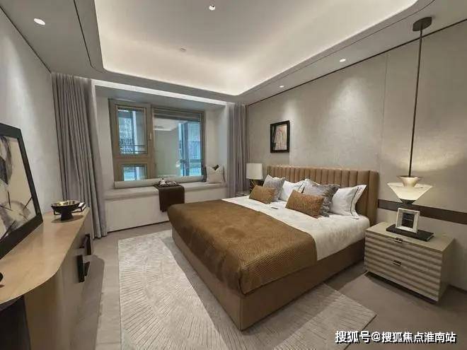 上海虹口碧云北外滩.尊邸售楼处电话☎:400-8818-994✔✔✔ 穿过客餐厅,是主休息区,三间卧室,南北双次卧+套房主卧。客卫干湿分离,两间次卧都可以作为正常成人卧室使用,小编实地测量下来,样板间的北次卧,加上飘窗有12㎡+,南次卧带飘窗的情况下有14㎡左右。